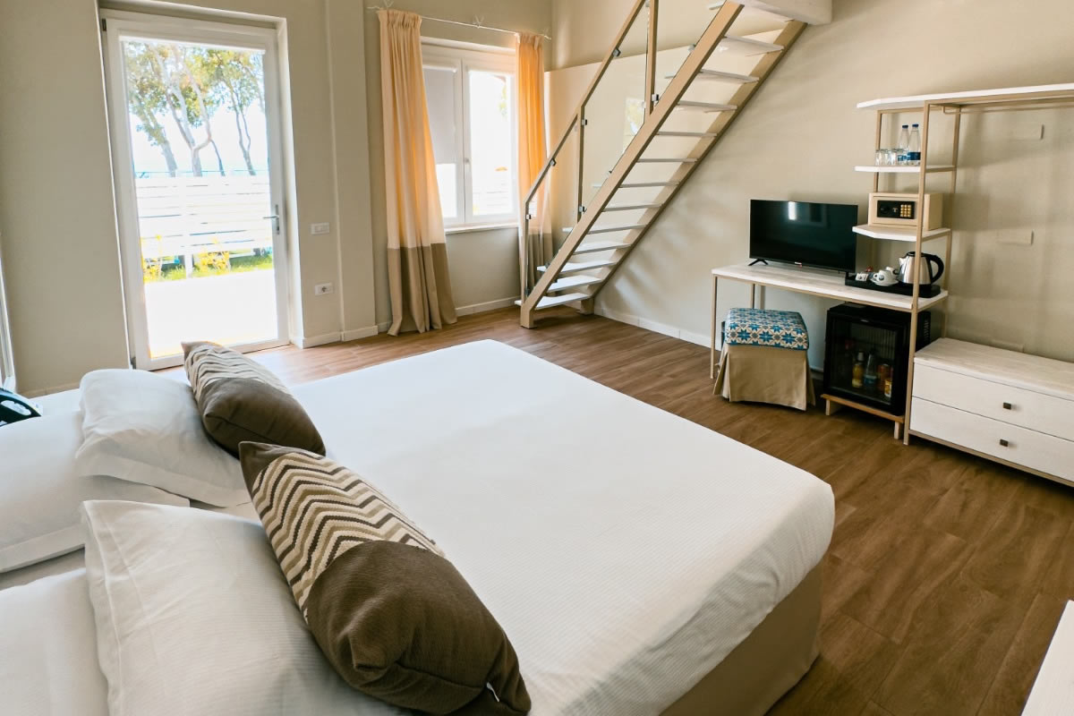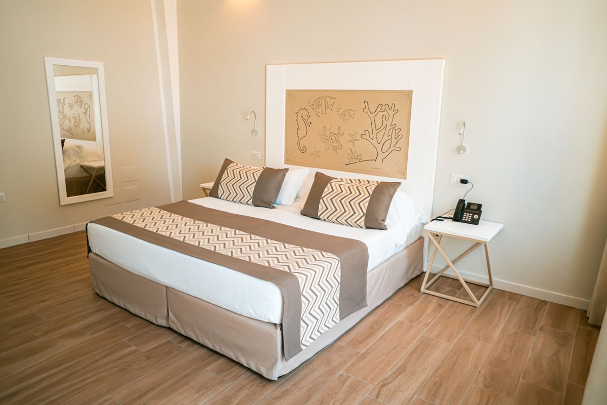 Le camere dell’Hotel Lido Beach offrono un perfetto equilibrio tra eleganza essenziale e autenticità sarda. Ogni ambiente è stato arredato con cura da artigiani locali, utilizzando materiali naturali e dettagli che richiamano il paesaggio circostante.
